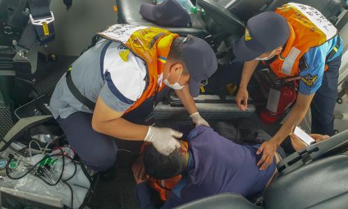 ÇÑÆí ¿©¼öÇØ°æÀº 5¿ù 26ÀÏ ÇöÀç °ü³» µµ¼Áö¿ª ¹× ¼±»ó ÀÀ±ÞȯÀÚ 59¸íÀ» À̼ÛÇÏ¿© ±¹¹ÎÀÇ ¼ÒÁßÇÑ »ý¸íÀ» ÁöÅ´¿¡ ÀÖ¾î ¾ÕÀå¼°í ÀÖ´Ù.