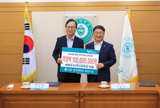 Çãż± ´ëÇ¥´Â ¡°Äڷγª19·Î ÀÎÇÏ¿© ¿ì¸® »çȸ ¸ðµç ¿µ¿ª¿¡¼ ¾î·Á¿òÀ» °Þ°í ÀÖ´Â ÈĹè Çлýµé¿¡°Ô Èû°ú ¿ë±â¸¦ ºÒ¾î³Ö¾î ÁÖ°í ½Í¾î ¹ßÀü±â±ÝÀ» Ã⿬Çϱâ·Î °á½ÉÇß´Ù.¡±¶ó°í ¸»ÇÏ°í ¡°°æ»ó´ëÇб³ ÇØ¾ç°úÇдëÇÐ ÇлýµéÀÌ ¿ì¸®³ª¶ó ÇØ¾ç¼ö»ê»ê¾÷À» ¹ßÀü½ÃŰ´Â ±¹°¡Àû µ¿·®ÀÌ µÇ±â¸¦ ±â´ëÇÏ´Â ¸¶À½ÀÌ´Ù.¡±¶ó°í ¸»Çß´Ù.