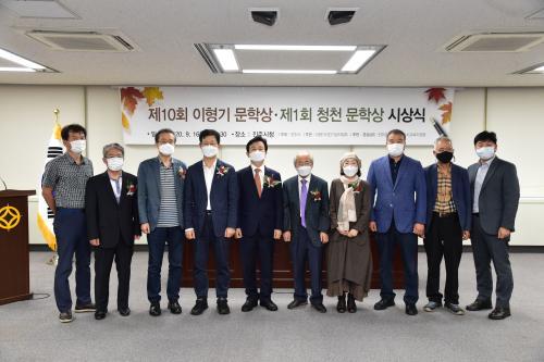 °Èñ±Ù ½ÃÀÎÀº ¡°ÀÌÇü±â ¹®ÇлóÀ» ¼ö»óÇÏ°Ô µÇ¾î ¿µ±¤ÀÌ´Ù. Áö¿ªÀÇ ¹®¿¹ÀεéÀÌ ¼ºÀåÇÒ ¼ö ÀÖ´Â ÀÚ¸®°¡ ¸¹ÀÌ ¸¶·ÃµÇ¾úÀ¸¸é ÇÏ´Â ¹Ù¶÷ÀÌ´Ù¡±¶ó°í ¼Ò°¨À» ¸»Çß°í, Á¶Àº±æ ½ÃÀÎÀº ¡°20³â ¹®´Ü»ýȰ Áß¿¡ ù ¼ö»óÀ̶ó ¸Å¿ì ¶æ±í´Ù. ¾ÕÀ¸·Îµµ ²ÙÁØÈ÷ ¹®ÇÊÀÛ¾÷¿¡ ¸ÅÁøÇϰڴ١±°í ¼Ò°¨À» ¸»Çß´Ù.