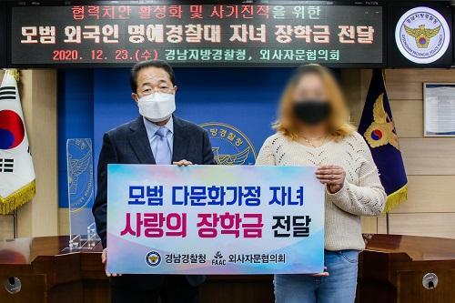 ÀåÇÐ±Ý Àü´Þ ´ë»óÀÚ´Â, °æ³²°æÂûû ¿Ü»çÀÚ¹®ÇùÀÇȸ¿¡¼ µµ³» 23°³ ½Ã, ±º °ÅÁÖ ´Ù¹®È°¡Á¤ ÀÚ³à Áß ºÒÄ¡º´, ±âÃÊ»ýȰ¼ö±Þ, ÇѺθ𠰡Á¤ÀÇ ÀÚ³à·Î¼ °¡Á¤°ú Çб³»ýȰ¿¡¼ ¸ð¹üÀ» º¸ÀÌ´Â ÀÚ³àµéÀ» ¾ö¼±ÇÏ¿© ¼±Á¤ÇÏ¿´°í 1Àδç 50¸¸¿ø¿¡¼ 100¸¸¿øÀÇ ÀåÇбÝÀ» °³º° ¼ö¿©ÇÏ¿´´Ù.