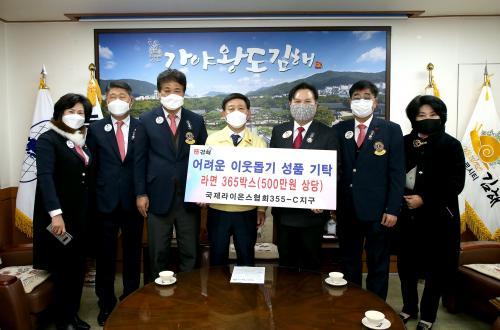 ½Å±âÀÏ ±¹Á¦¶óÀ̿½ºÇùȸ355-CÁö±¸ ÃÑÀç´Â ¡°À̹ø ¼ºÇ°ÀÌ ¾î·Á¿î ÀÌ¿ôµé¿¡°Ô Á¶±ÝÀ̳ª¸¶ µµ¿òÀÌ µÇ±â¸¦ ¹Ù¶ó¸ç ¾ÕÀ¸·Îµµ Àû±ØÀûÀÎ ³ª´® ½ÇõÀ»ÅëÇØ Áö¿ª»çȸ ¹ßÀü¿¡ À̹ÙÁöÇϰڴÙ.¡±°í ±âŹ ¼Ò°¨À» ¹àÇû´Ù.