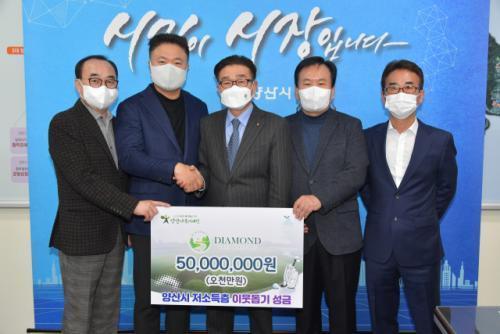 [½Åµ¿¾Æ¹æ¼Û=Ç㳪¿µ ±âÀÚ] ¾ç»ê½Ã »óºÏ¸é ´ÙÀ̾Ƹóµå ÄÁÆ®¸®Å¬·´(´ëÇ¥ÀÌ»ç ¹®È£)Àº 29ÀÏ ¾ç»ê½Ãû ½ÃÀå½ÇÀ» ¹æ¹®ÇØ ¼Ò¿Ü°èÃþÀ» À§ÇØ ½á´Þ¶ó¸ç ¾ç»ê½Ã º¹ÁöÀç´Ü(ÀÌ»çÀå ±èÀ챂 ¾ç»ê½ÃÀå)¿¡ ¼º±Ý 5000¸¸¿øÀ» ±âŹÇß´Ù.