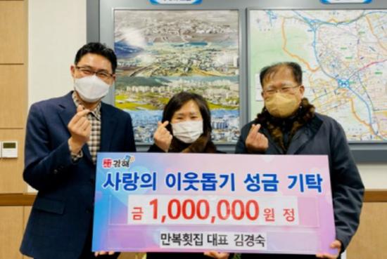 ÇѰæ¿ë ÀåÀ¯1µ¿ÀåÀº ¡°Áö¿ª»çȸ¸¦ À§ÇØ ¿ÃÇØµµ ¼º±ÝÀ» ±âÅ¹ÇØÁֽЏ¸º¹È½Áý¿¡ °¨»çµå¸°´Ù. °ü³» ¾î·Á¿î ÀÌ¿ôµéÀÌ µû¶æÇÑ °Ü¿ïÀ» ³¯ ¼ö ÀÖµµ·Ï Á¤ÁßÈ÷ Àß Àü´ÞÇϰڴÙ.¡±°í ¹àÇû´Ù.