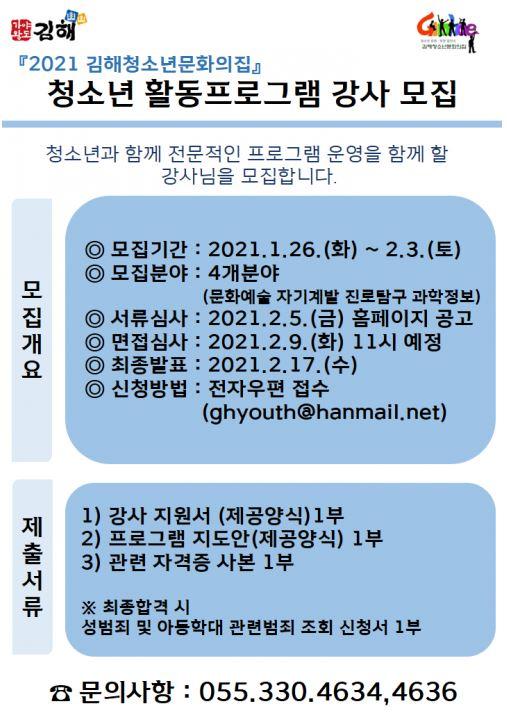 û¼Ò³â¹®ÈÀÇÁýÀº ±èÇØ½Ã°¡ Á÷Á¢ ¿î¿µÇϴ û¼Ò³â¼ö·Ã½Ã¼³·Î½á 2004³â¿¡ °³°üÇÏ¿© 17³â° °ü³» û¼Ò³âµéÀ» À§ÇØ ´Ù¾çÇÏ°í ¾Æ³¦¾ø´Â Áö¿øÀ» Çϰí ÀÖ´Ù.
