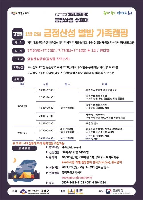 ¡®±ÝÁ¤»ê¼º º°¹ã °¡Á·Ä·ÇΡ¯Àº ±ÝÁ¤±¸ ¿ª»ç Å׸¶ °ü±¤ ÇÁ·Î±×·¥ÀÎ ¡®ÀÍ»çÀÌÆÃ(Exciting!) ¿ª»ç¿©Çà, ±ÝÁ¤»ê¼º ¼öÈ£´ë¡¯ÀÇ ³× ¹øÂ° Çà»ç·Î ÇöÁ¸ÇÏ´Â ±¹³» ÃÖÀå(1¸¸8845m)ÀÎ ±ÝÁ¤»ê¼ºÀÇ ¿ª»çÀû °¡Ä¡¸¦ ´À³¢°í ¹è¿ì¸ç ¹®ÈÀ¯»êÀ» Ä£±ÙÇÏ°Ô Á¢Çϱâ À§ÇØ ¸¶·ÃµÆ´Ù.