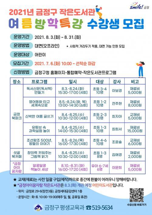¿ì¼± ±ÝÁ¤ºÏÆÄÅ© ÀÛÀºµµ¼°ü¿¡¼ ¡âµ¶¼½Å¹®(Ã¥) ¸¸µé±â, ¡â¿µ¾îµ¿È Àбâ, ¡â¿©¸§ ±Û¾²±â, ¡âÀ¯Æ©ºê ¼Ó °úÇнÇÇè ³îÀÌ, ¡âÁ¶¼±¿ÕÁ¶ ¿Õ À̾߱⠵î 5°¡Áö ÇÁ·Î±×·¥ÀÌ ¿î¿µµÇ¸ç, ¼¸°ñºÏÄ«Æä¿¡¼´Â µ¶¼ÀÇ Àç¹Ì¸¦ ¾Ë·ÁÁÙ ¡â±×¸²Ã¥ Àбâ ÇÁ·Î±×·¥ÀÌ ÁøÇàµÈ´Ù.