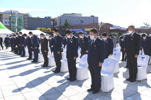 À̳¯ ÇÕµ¿ Ãß³ä½Ä¿¡´Â ¿©¼ø»ç°Ç ½Ã‧±º À¯Á·È¸, Á¦ÁÖ4‧3 À¯Á·È¸¿Í ±¹È¸ÀÇ¿ø, µµÁö»ç, µµÀÇÀå, ±â°üÀå µî Äڷγª19 ¹é½Å 2Â÷ Á¢Á¾ ¿Ï·áÀÚ¸¦ Æ÷ÇÔÇÑ 90¿© ¸íÀÌ Âü¼®ÇÑ °¡¿îµ¥ °æ°ÇÇÑ ºÐÀ§±â ¼Ó¿¡¼ À¯Á·µéÀÇ ¾ÆÇÄÀ» Ä¡À¯Çϰí Èñ»ýÀÚµéÀÇ ³ÌÀ» ±â·È´Ù.