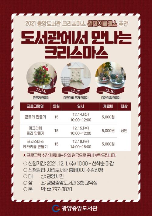 ¡®µµ¼°ü¿¡¼ ¸¸³ª´Â Å©¸®½º¸¶½º¡¯¿¡ ´ëÇÑ ÀÏÁ¤°ú ³»¿ëÀº ±¤¾ç½Ã¸³µµ¼°ü ȨÆäÀÌÁö ¿Í Áß¾Óµµ¼°ü ÀνºÅ¸±×·¥À» ¹æ¹®Çϰųª ±¤¾çÁß¾Óµµ¼°ü À¸·Î ¹®ÀÇÇϸé ÀÚ¼¼È÷ ¾Ë ¼ö ÀÖ´Ù.