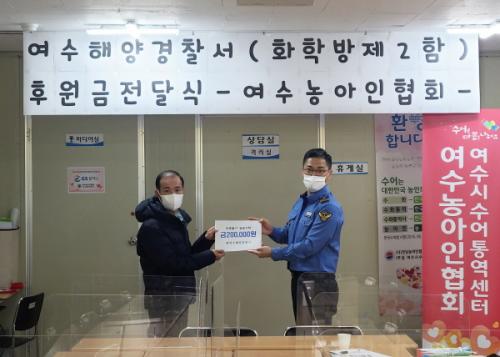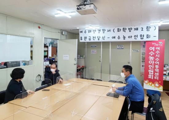 ¿©¼öÇØ°æÀº ¿À´Ã ¿ÀÈÄ 1½Ã 30ºÐ²² Àü³² ¿©¼ö½Ã¿¡ À§Ä¡ÇÑ ¡®¿©¼ö½Ã ¼ö¾îÅ뿪¼¾ÅÍ¡¯¸¦ ¹æ¹®ÇØ °æ¿¬´ëȸ ¿ì¼öÇÔÁ¤¿¡¼ ¹ÞÀº Æ÷»ó±Ý Àü¾×À» À§¹®±ÝÀ¸·Î Àü´ÞÇß´Ù.