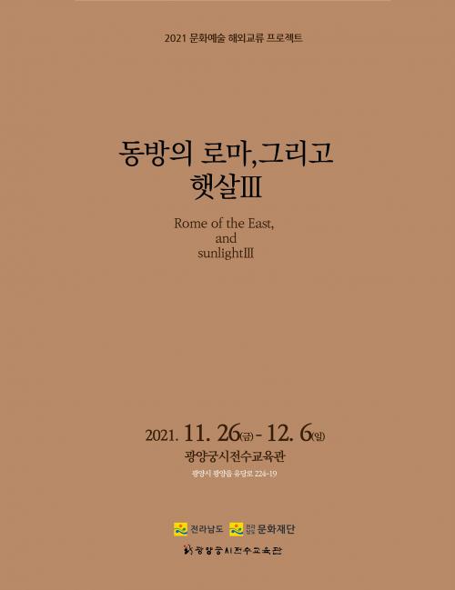 Áö³ 11¿ù 26ÀÏ~12¿ù 15ÀÏ Àü³²¹®ÈÀç´ÜÀÇ ÈÄ¿øÀ¸·Î ±¤¾ç±Ã½ÃÀü¼ö±³À°°ü(±Ã½ÃÀå ±è±â)°ú ¿ìÁŰ½ºÅº ±¹¸³¿¹¼ú¿øÀÇ ±³·ùÀüÀÌ ¡®µ¿¹æÀÇ ·Î¸¶ ±×¸®°í Ç޻쥲¡¯À̶ó´Â ÁÖÁ¦·Î ±¤¾ç±Ã½ÃÀü¼ö±³À°°ü ±âȹÀü½Ã½Ç¿¡¼ ÁøÇàµÆ´Ù.