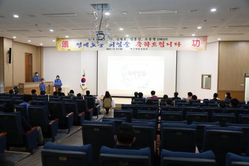 À̹ø ¿µ¿¹·Î¿î Á¤³âÅðÁ÷À» ¸ÂÀÌÇØ ÀçÁ÷±â°£ µ¿¾È ÇØ¾ç°æÂû ¹ßÀüÀ» À§ÇØ Çå½Å°ú ±¹°¡¿¡ ±â¿©ÇÑ °øÀûÀ» ÀÎÁ¤¹ÞÀº °æÂû°ü ±è¿ë±¸, ½ÅÇüÈ£ °æ°¨, ÀÓÈ«¼· °æÀ§, Á¶¿ëÇü Áֻ纸¿¡°Ô ÈÆÀå ¹× Æ÷ÀåÀ» ¼ö¿© Çß´Ù.