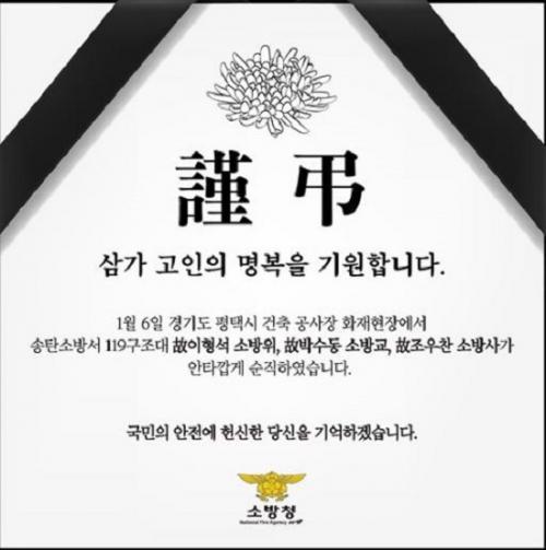 ͺ ÀÌÇü¼® ¼Ò¹æ°æ, ͺ ¹Ú¼öµ¿ ¼Ò¹æÀå, ͺ Á¶¿ìÂù ¼Ò¹æ±³´Â Áö³ 5ÀÏ ¿ÀÈÄ 11½Ã 46ºÐ°æ ¹ß»ýÇÑ ÆòÅà ÆÔ½º¹°·ù¼¾ÅÍ ½ÅÃà°ø»çÀå ÈÀ縦 Áø¾ÐÇÏ´ø Áß °Ç¹° ³»ºÎ¿¡ °í¸³µÇ´Â »ç°í¸¦ ´çÇØ ¼øÁ÷Çß´Ù.