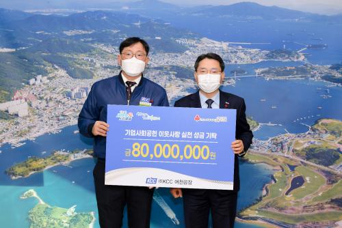 Àå°æ±â °øÀåÀå(¢ßKCC ¿©Ãµ°øÀå)Àº ¡°°Ü¿ïö ÇÑÆÄ¿Í Äڷγª19 Àå±âÈ·Î Èûµç ½Ã°£À» º¸³»°í ÀÖÀ» »ýȰÀÌ ¾î·Á¿î ºÐµé¿¡°Ô Èñ¸Á°ú ¿ë±â¸¦ µå¸®°íÀÚ ¼º±ÝÀ» ¸¶·ÃÇß´Ù¡±¸ç, ¡°Áö¼ÓÀûÀÎ ÈÄ¿ø°ú ³ª´®ÀÇ ½ÇõÀº ¿ì¸® ±â¾÷ÀÇ ¼ºÀå°ú Áö¿ª¹ÎµéÀÇ ´õ ÁÁÀº »îÀ» ÇÔ²² ¸¸µé¾î°¡´Â °úÁ¤À̶ó »ý°¢ÇÏ°í ¾ÕÀ¸·Îµµ »çȸ°øÇå¿¡ ´õ¿í ³ë·ÂÇϰڴ١±°í ¸»Çß´Ù.
