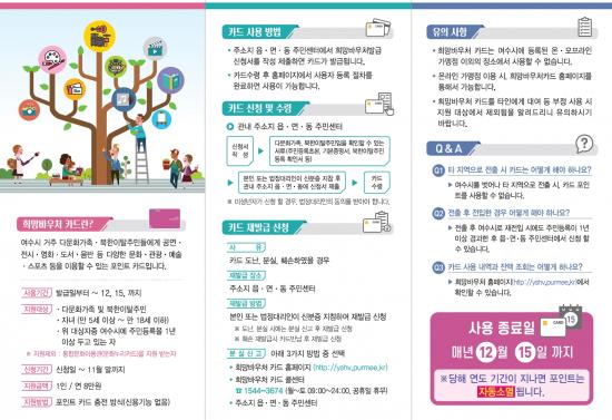 Èñ¸Á¹Ù¿ìóīµå ¹ß±ÞÀº ÁÖ¼ÒÁö À¾¸é»ç¹«¼Ò¿Í µ¿Áֹμ¾ÅÍ¿¡¼ ½Åû °¡´ÉÇϰí, ±âÁ¸ Ä«µå ¼ÒÀ¯ÀÚ´Â µ¿ÀÏÄ«µå·Î ÀçÃæÀüÇØ °ü³» ¹®È, ¿¹¼ú, üÀ° °ü·Ã Èñ¸Á¹Ù¿ìó °¡¸ÍÁ¡¿¡¼ ÀÚÀ¯·Ó°Ô ÀÌ¿ë °¡´ÉÇÏ´Ù.