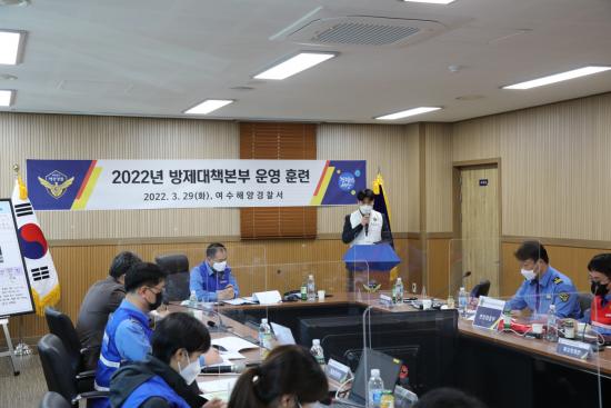 ¿©¼öÇØ°æ¿¡ µû¸£¸é À̳¯ ¿ÀÈÄ 2½Ã²² °æÂû¼ ´ëȸÀǽǿ¡¼ ¼ÇØÁö¹æÇØ¾ç°æÂûû, ¿©¼ö½Ã, ÇØ¾çȯ°æ°ø´Ü µî 4°³ ±â°ü 50¿© ¸íÀÌ Âü¿©ÇßÀ¸¸ç, Äڷγª19 °¨¿°º´ ¿¹¹æÀ» À§ÇØ ¼Ò¼ö ÁýÇÕ Àοø°ú PC ¿µ»óÀ» Ȱ¿ëÇÑ ºñ´ë¸é ÈÆ·ÃÀÌ ÁøÇàµÆ´Ù.