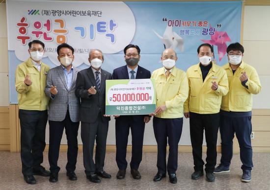 (Àç)±¤¾ç½Ã¾î¸°À̺¸À°Àç´ÜÀº Áö³ 3¿ù 31ÀÏ Á¤Çöº¹ ±¤¾ç½ÃÀå, °¿ëÀç Àç´Ü »óÀÓÀÌ»ç, ±âŹÀÚ µî 5¸íÀÌ Âü¼®ÇÑ °¡¿îµ¥ ÈÄ¿ø±Ý ±âʽÄÀ» °¡Á³´Ù.