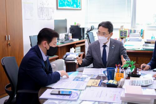 ±Ç ½ÃÀåÀº ¡°´ë±Ô¸ð SOC, ¹Ì·¡ ¼ºÀå»ç¾÷ ÃßÁøÀ» À§Çؼ´Â ±¹ºñ Àç¿øÈ®º¸°¡ ¹«¾ùº¸´Ù Áß¿äÇÏ´Ù. ±×¸¸Å Àý½ÇÇÔÀ» °¡Áö°í ±âÀçºÎ¸¦ ¹æ¹®Çß´Ù¡±¸é¼ ¡°Áß¾ÓºÎó, ±¹È¸, °ü°è±â°ü°ú ±ä¹ÐÇÑ °øÁ¶°ü°è¸¦ À¯ÁöÇØ ¿ì¸® ½Ã°¡ °ÇÀÇÇÑ »ç¾÷ÀÌ ±¹ºñ Áö¿øÀ¸·Î À̾îÁú ¼ö ÀÖµµ·Ï ÃÖ¼±À» ´ÙÇϰڴ١±°í ¹àÇû´Ù.