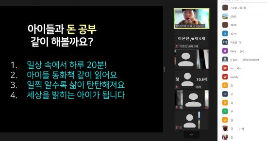À̹ø °¿¬Àº µµ¼ ¡¸µ·À» ¾Æ´Â ¾ÆÀÌ´Â ²Ù´Â ²ÞÀÌ ´Ù¸£´Ù¡¹¸¦ Áß½ÉÀ¸·Î, ÀÚ³àµéÀÌ ¿Ã¹Ù¸¥ °æÁ¦ Áö½ÄÀ» ½ÀµæÇÒ ¼ö ÀÖµµ·Ï ºÎ¸ðµéÀÇ ÀÚ³à °æÁ¦±³À°¿¡ µµ¿òÀ» ÁÖ±â À§ÇØ ¸¶·ÃÇßÀ¸¸ç, Äڷγª19 »óȲÀ» °í·ÁÇØ ºñ´ë¸é ÇÁ·Î±×·¥(ZOOM)À¸·Î ¿î¿µÇÏ´Â °¡¿îµ¥ ºÎ¸ðµéÀÌ ¿Â¶óÀÎÀ¸·Î Á¢¼ÓÇØ °¿¬¿¡ Âü¿©Çß´Ù.