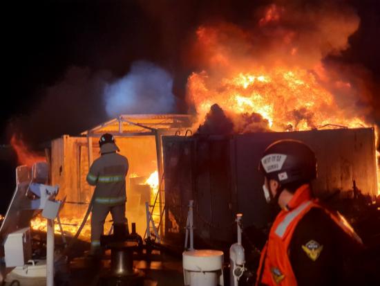 ÈÀç Áø¾Ð¿¡´Â °æºñÇÔÁ¤ 5ô, ³²ÇØ¼Ò¹æ¼ ¼Ò¹æÂ÷ 3´ë, ¹Î°£±¸Á¶¼± 3ôÀÌ µ¿¿øµÇ¾úÀ¸¸ç, °¡µÎ¸® ¾ç½ÄÀå ¹ÙÁö¼±Àº â°í ¿ëµµ·Î ÄÁÅ×À̳ʹڽº, ³Ãµ¿°í, Æó»ç¾î·ù󸮱â, ÀϹÝÀÚÀç µîÀÌ ÀûÀçµÇ¾î ÀÖ¾úÀ¸³ª Àü¼ÒµÇ°í »ç¶÷Àº ÁÖ°ÅÇÏÁö ¾Ê¾Æ ÀθíÇÇÇØ´Â ¹ß»ýÇÏÁö ¾Ê¾Ò´Ù.
