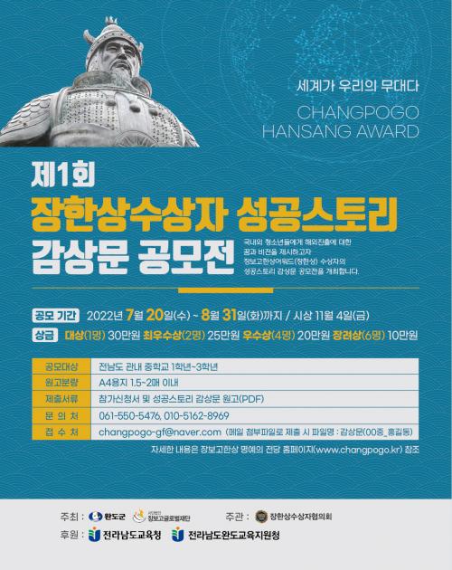 ¿ÃÇØ óÀ½ °³ÃÖÇÏ´Â °¨»ó¹® °ø¸ðÀüÀº Àü³²±³À°Ã»ÀÇ ÇùÁ¶¸¦ ¾ò¾î µµ³» ÁßÇлý 1ÇгâºÎÅÍ 3Çгâ±îÁö ÇлýµéÀÌ À庸°íÇÑ»ó ¸í¿¹ÀÇ Àü´ç ȨÆäÀÌÁö(www.changpogo.kr)¿¡¼ Á¦½ÃµÈ ÀåÇÑ»ó ¼ö»óÀÚÀÇ ¼º°ø½ºÅ丮¸¦ ÀÐ°í ´À³¤ °¨»ó¹®À» Á¦ÃâÇÏ¸é ¿ì¼öÇÑ ÇлýÀ» ¼±Á¤ÇÑ´Ù