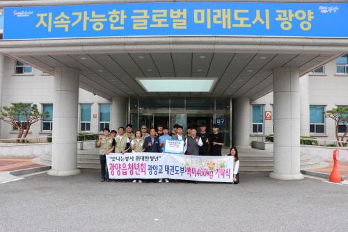 ±¤¾çÀ¾Ã»³âȸ´Â Àü³² Áö¿ª ¿¤¸®Æ® űǵµ¸¦ ¼±µµÇϸç Àü±¹´ëȸ¸¦ ºñ·ÔÇÑ °¢Á¾ ´ëȸ¿¡¼ ¿ì½ÂÇÏ¸ç ±¤¾ç½Ã üÀ° ¹ßÀü¿¡ ±â¿©Çϰí ÀÖÀ¸³ª, ºñÀαâ Á¾¸ñÀ¸·Î ±×´Ã¿¡ °¡·ÁÁø űǵµºÎ »ç±â ÁøÀÛÀ» À§ÇØ ¹é¹Ì 400kgÀ» Àü´ÞÇß´Ù.