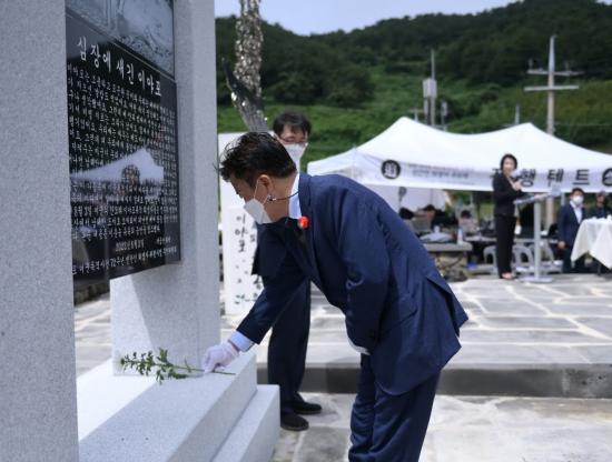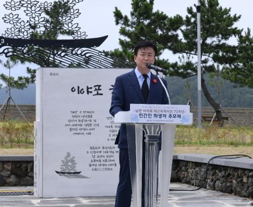 Á¤±â¸í ¿©¼ö½ÃÀåÀº Àλ縻¿¡¼ ¡°ÀÌ¾ßÆ÷ ¹Ì±ºÆø°Ý»ç°ÇÀº Çѱ¹ÀüÀïÀÇ ¼Ò¿ëµ¹ÀÌ ¼Ó¿¡¼ ¹ß»ýÇÑ Çö´ë»çÀÇ ºñ±ØÀÌ´Ù. À¯°¡Á·µé²² Áø½É¾î¸° À§·Î¸¦ µå¸°´Ù¡±¸é¼ ¡°ÇÏ·ç »¡¸® °ú°ÅÀÇ ¾ÆÇÄÀ» Ä¡À¯Çϰí Áø½Ç±Ô¸í°ú Èñ»ýÀÚ ¸í¿¹È¸º¹À» À§ÇØ ´Ù °°ÀÌ ÈûÀ» ¸ð¾Æ ³ª°¡ÀÚ¡±°í ¸»Çß´Ù.