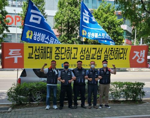 »ï¼ºÀ£½ºÅ丮³ëµ¿Á¶ÇÕÀº ±Ý¼Ó»ï¼º¿¬´ë °øµ¿¿ä±¸¾È 5°³ Ç׸ñÀ» Æ÷ÇÔÇÏ¿© 16°³ Ç׸ñÀÇ ¿ä±¸¾ÈÀ» »çÃø¿¡ Àü´ÞÇÏ°í ±³¼·¿¡ ÀÓÇØ¿À°í ÀÖÀ¸³ª »çÃøÀº Àӱݱ³¼· Áß¿¡ ³ë»çÇùÀÇȸ¿Í ÇùÀÇÇÑ ³»¿ëÀ» ÀϹæÀûÀ¸·Î ¹ßÇ¥ÇÒ ½ÃÁ¡ÀÎ 4¿ù 12ÀÏ Àӱݱ³¼· 8Â÷½Ã »çÃø Á¦½Ã¾ÈÀ» ³ëÃø¿¡ Àü´ÞÇß°í »çÃøÁ¦½Ã¾È ³»¿ë ¿Ü¿¡´Â ¾î¶°ÇÑ Ç׸ñµµ ÇÕÀÇÇØ ÁÙ ¼ö ¾ø´Ù´Â ŵµ·Î ÀϰüÇϰí ÀÖ´Ù.