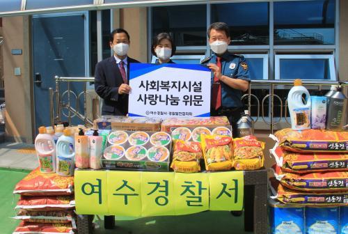 ¿©¼ö°æÂû¼Àå°ú °æÂû¹ßÀüÇùÀÇȸÀåÀº À§¹®Ç°À» Àü´ÞÇÏ´Â °úÁ¤¿¡µµ Äڷγª19µî °¨¿°º´À» ¿ì·ÁÇØ Á¢ÃËÀ» ÃÖ¼ÒÈÇÏ¸ç »ýÇÊǰ À§ÁÖ·Î ÁغñÇÑ À§¹®Ç°°ú ÇÔ²² °¨»ç¿Í À§·ÎÀÇ ¸¶À½À» ÀüÇß´Ù.