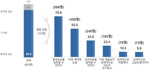 ¼ÒºñÀÚ 1,000¸í Áß 823¸í(82.3%)Àº ģȯ°æ Á¦Ç°À» ±¸ÀÔÇÒ Àǻ簡 ÀÖ¾ú°í, ÀÌ Áß 737¸í(89.6%)Àº ģȯ°æ Á¦Ç°À» ¼±ÅÃÇÏ°í ±¸¸ÅÇϴµ¥ Çѱ¹¼ÒºñÀÚ¿øÀÇ È¯°æ¼º Æò°¡Á¤º¸°¡ µµ¿òÀÌ µÇ¾ú´Ù°í ´äº¯Çß´Ù.