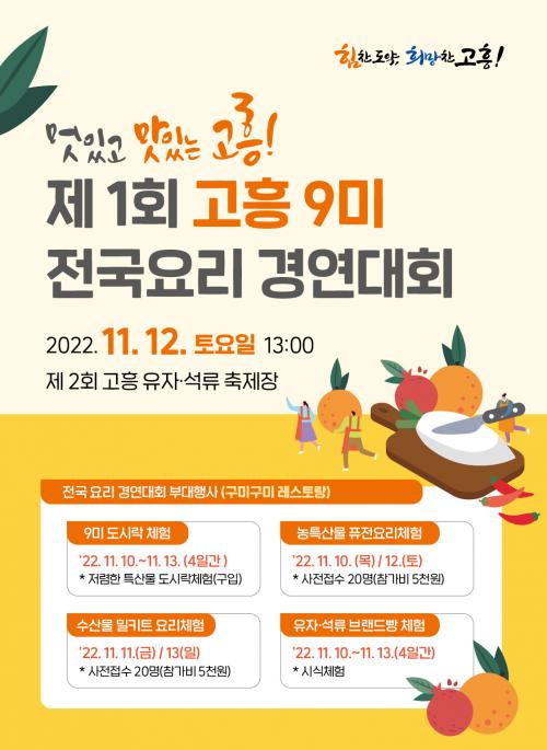 ±º °ü°èÀÚ´Â ¡°°íÈïÀÇ ¿ì¼öÇÑ ³óƯ»ê¹°À» Ȱ¿ëÇÑ °Ç°ÇÑ À½½Ä È«º¸¿Í Æ®·»µå¿¡ ¸Â´Â Âü½ÅÇÑ ¿ä¸® ¹ß±¼·Î À½½Ä°ü±¤ Ȱ¼ºÈ¸¦ À§ÇØ À̹ø ¿ä¸®´ëȸ¸¦ °èȹÇß´Ù¡±¸ç, Àü±¹¿¡ ¸¹Àº ¿ä¸®ÀεéÀÇ ¸¹Àº °ü½É ¹× Âü°¡¸¦ ¹Ù¶õ´Ù¡±°í ¸»Çß´Ù.