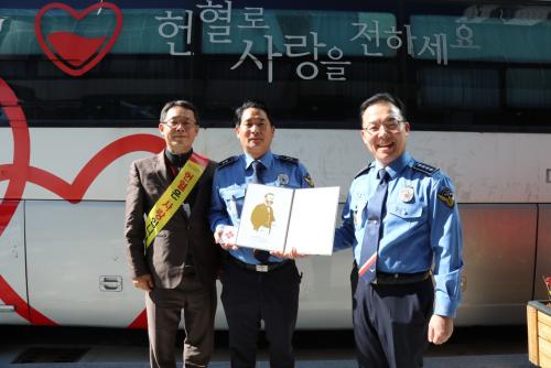 ¿©¼öÇØ°æ¿¡ µû¸£¸é À̳¯ ¿ÀÀü 10½ÃºÎÅÍ °æÂû¼­ ÁÖÂ÷Àå¿¡¼­ ´ëÇÑÀû½ÊÀÚ»ç Ç÷¾×¿ø ÇåÇ÷ ¹ö½º¸¦ ÀÌ¿ëÇØ »ç¶û ³ª´®À» ½ÇõÇÏ´Â ÇåÇ÷ Çà»ç°¡ ÁøÇàµÆ´Ù.